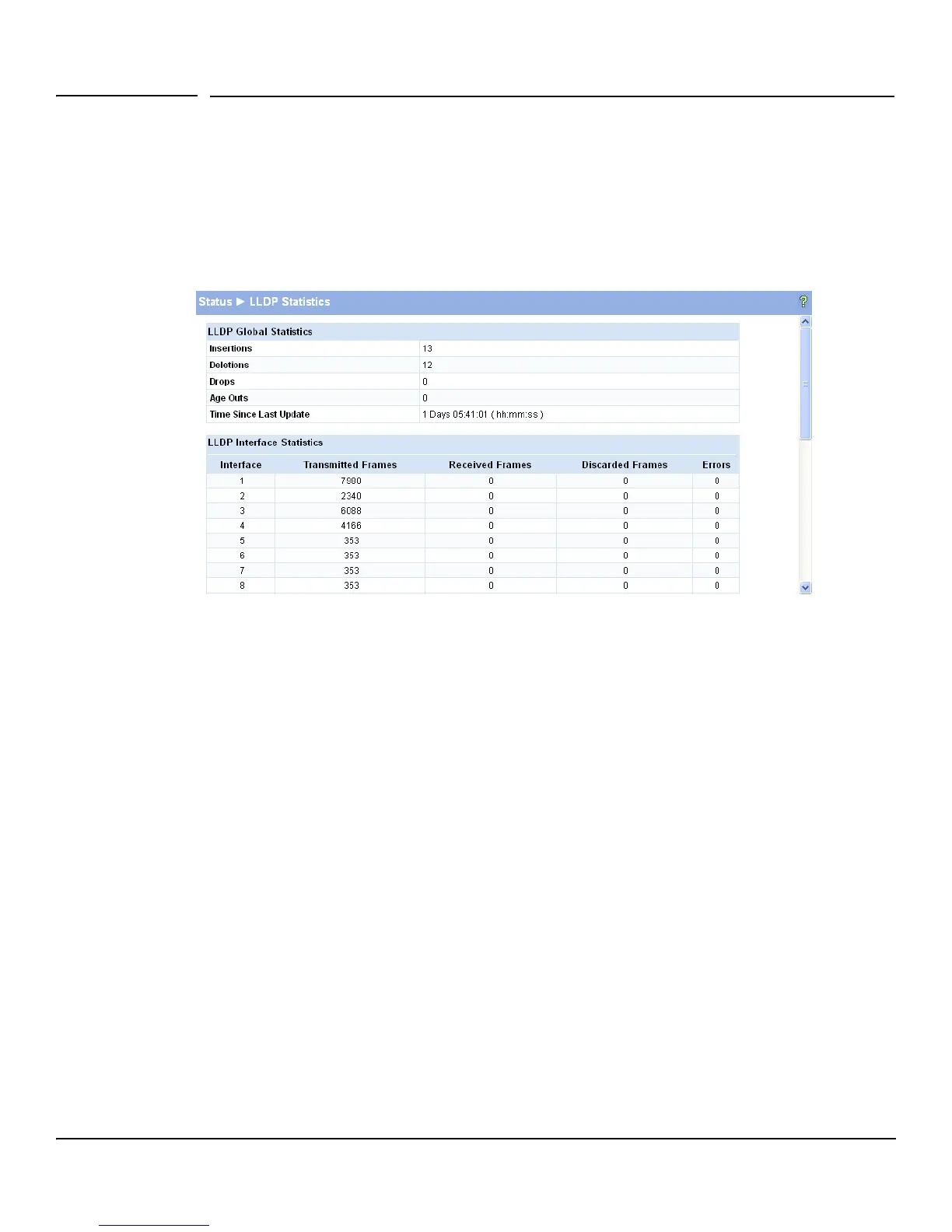 To display the LLDP Statistics page, click Status > LLDP Statistics in the navigation pane.
