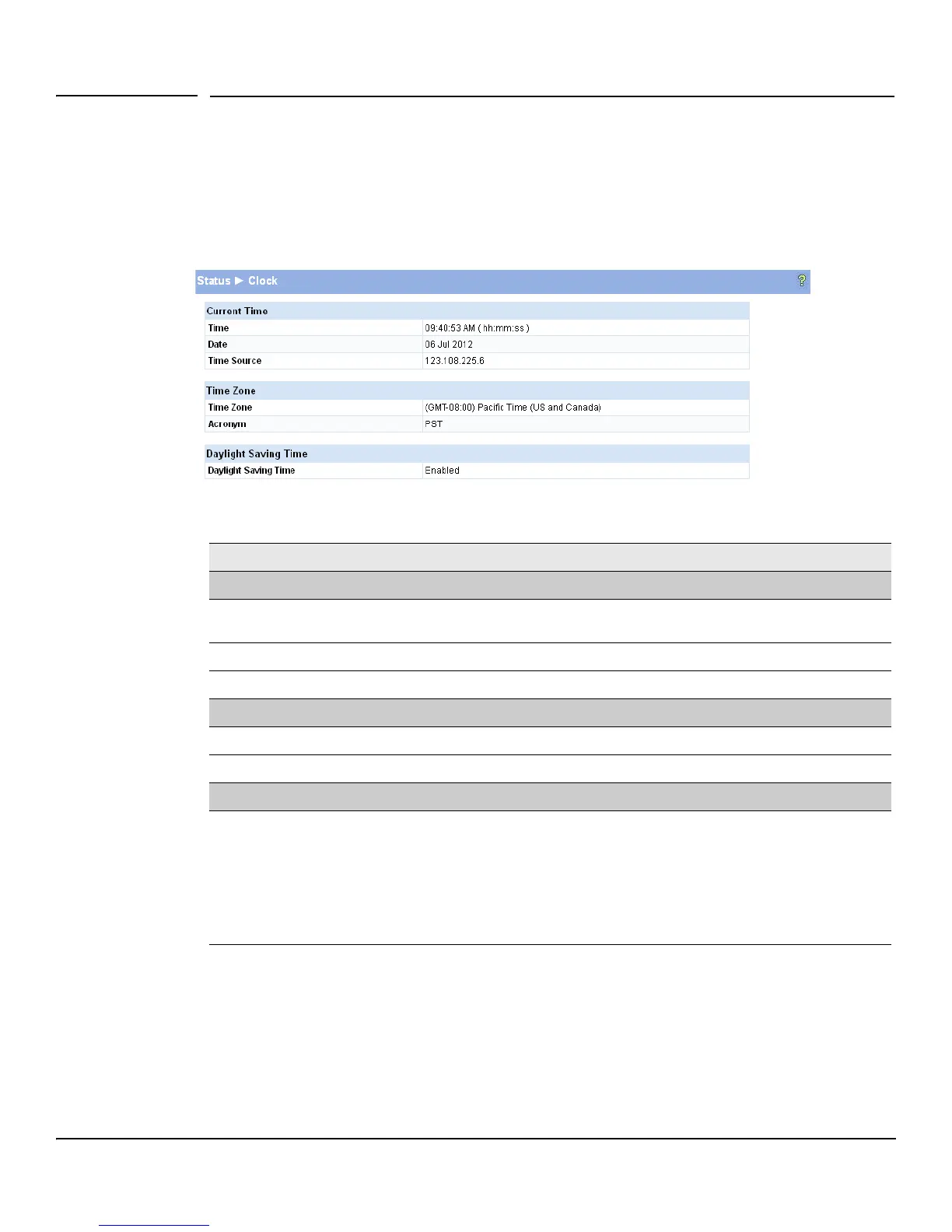 Time The current time. This value is determined by an SNTP server. When SNTP is disabled, the