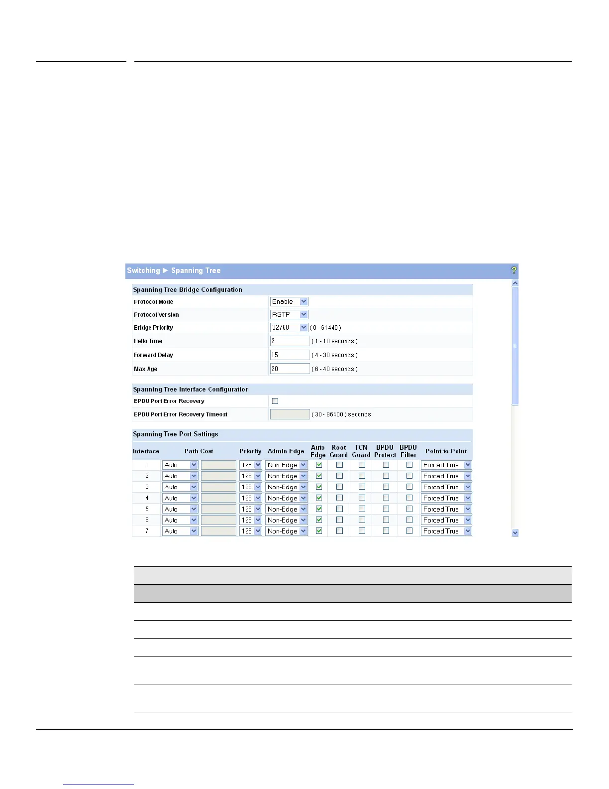 To display the Spanning Tree configuration page, click Switching > Spanning Tree in the navigation pane.