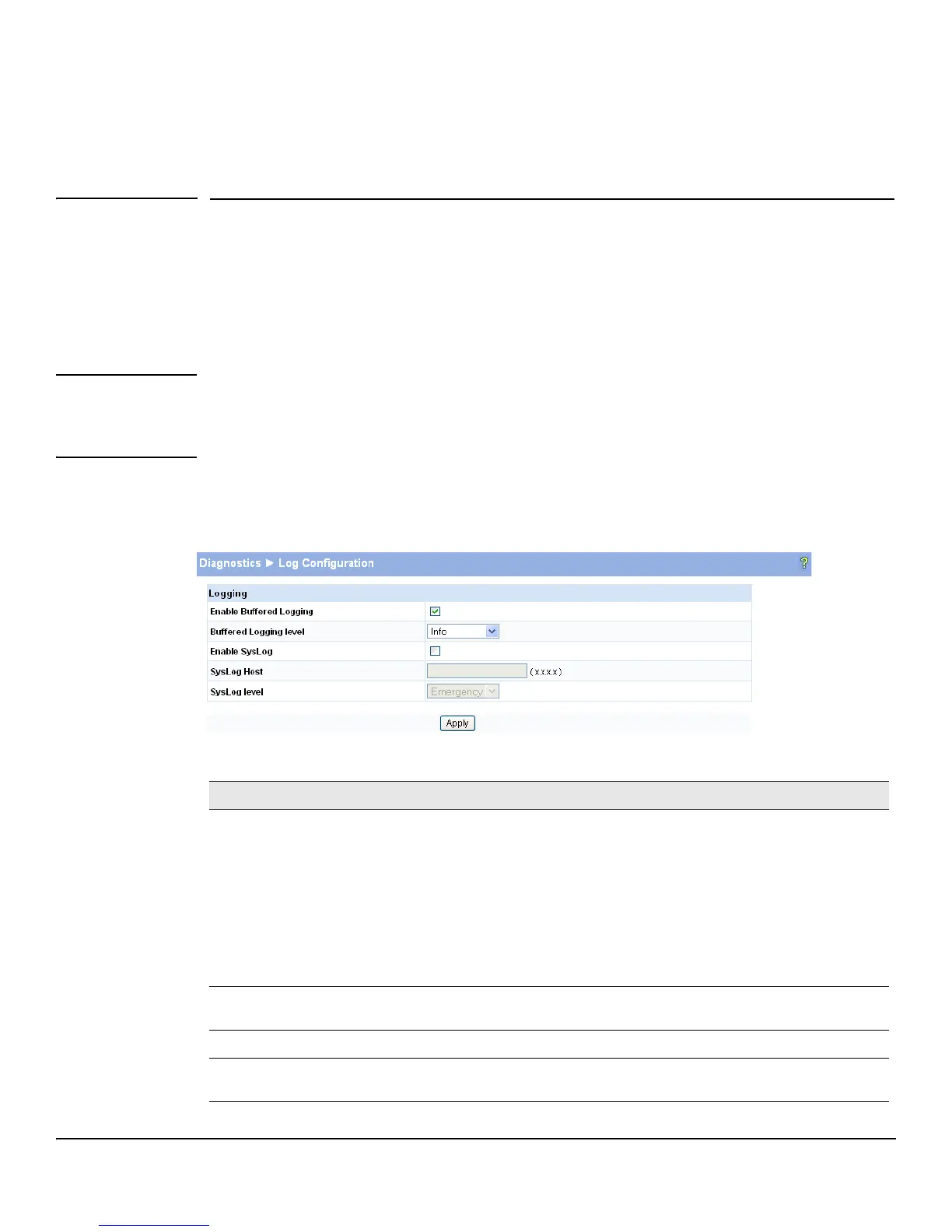 To display the Log Configuration page, click Diagnostics > Log Configuration in the navigation pane.