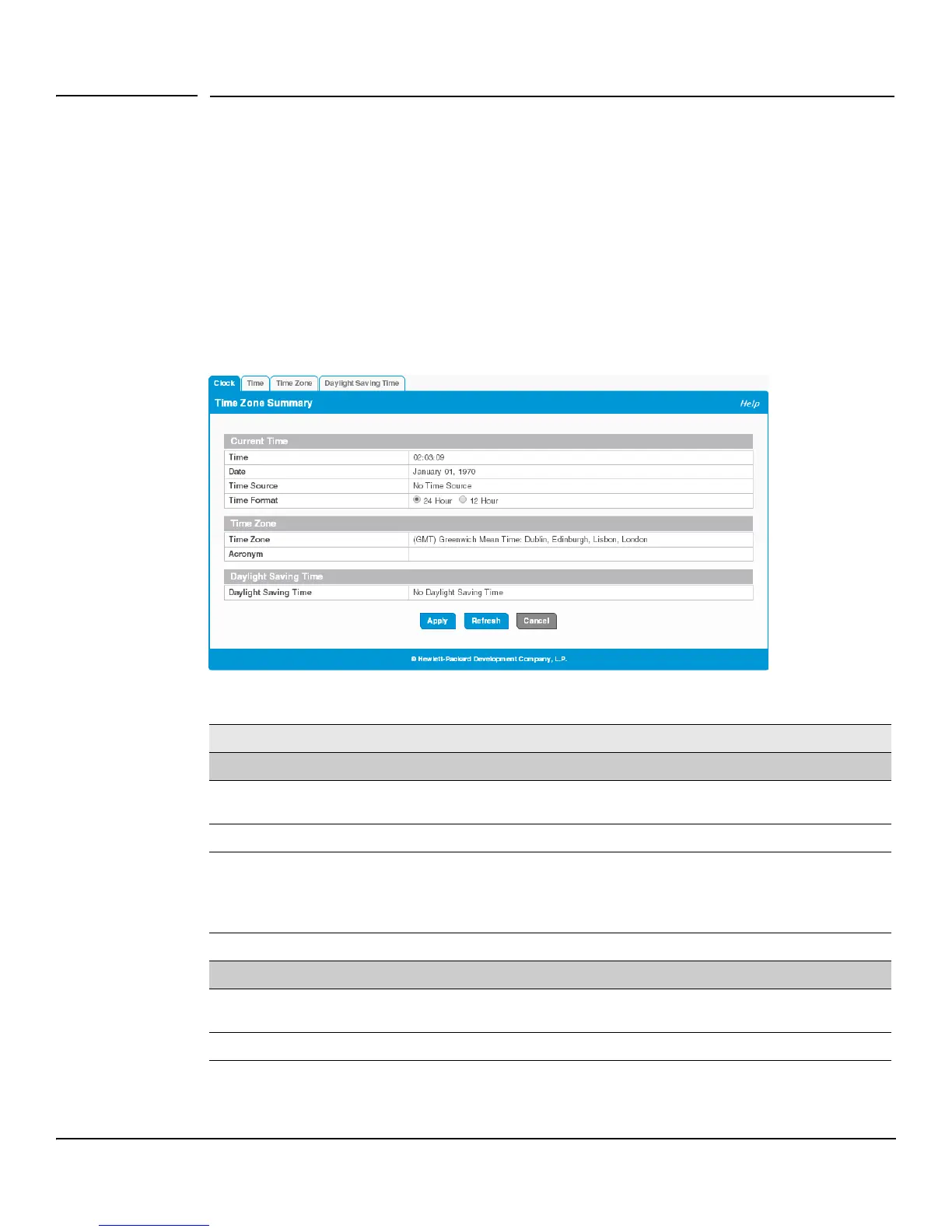 enables you to configure the time display format. To display the Time Zone Summary page, click Setup Network