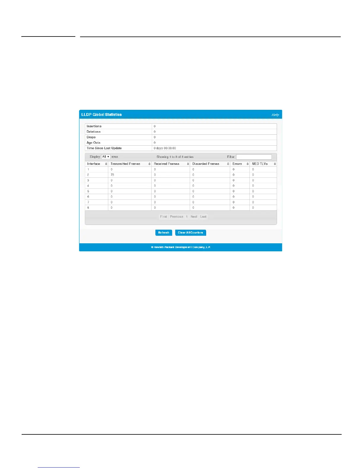 To display the LLDP Global Statistics page, click LLDP > Statistics in the navigation pane.