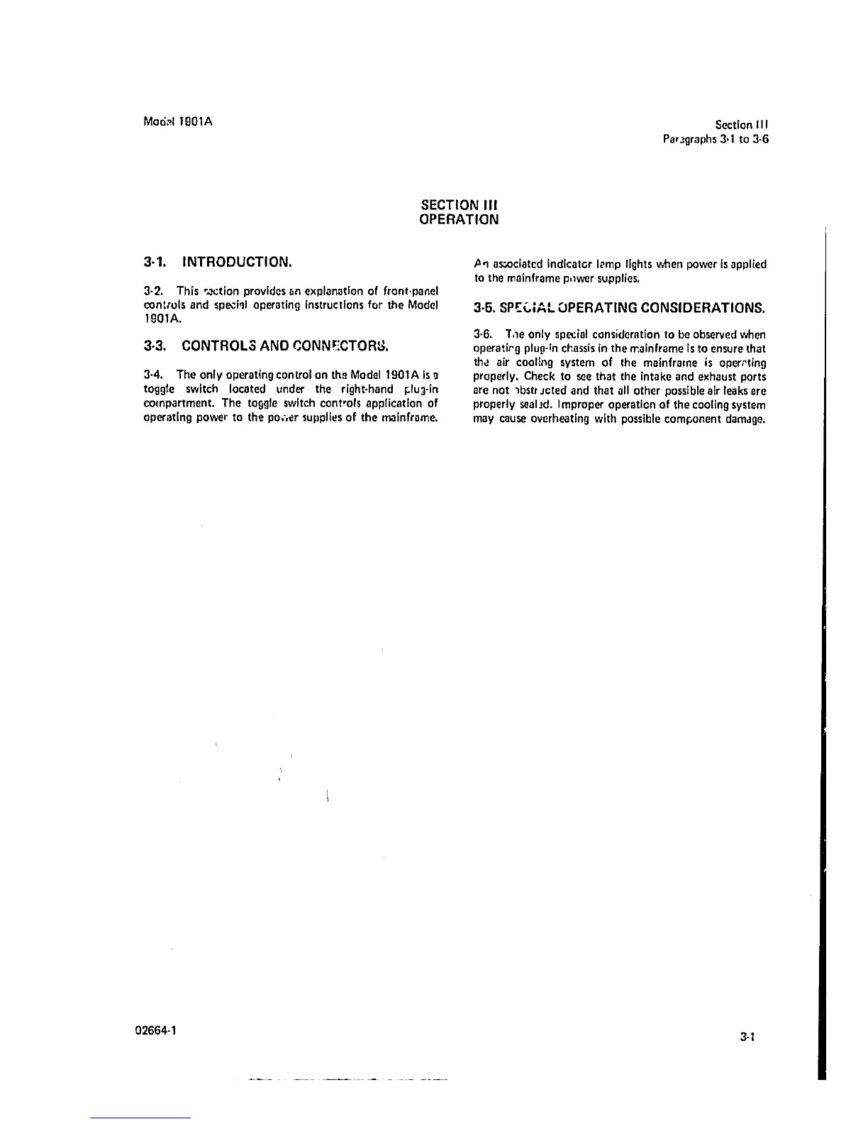 HP 1901A - SECTION III OPERATION; 3-3. CONTROLS AND CONNECTORS.; 3-5. SPECIAL OPERATING CONSIDERATIONS.
