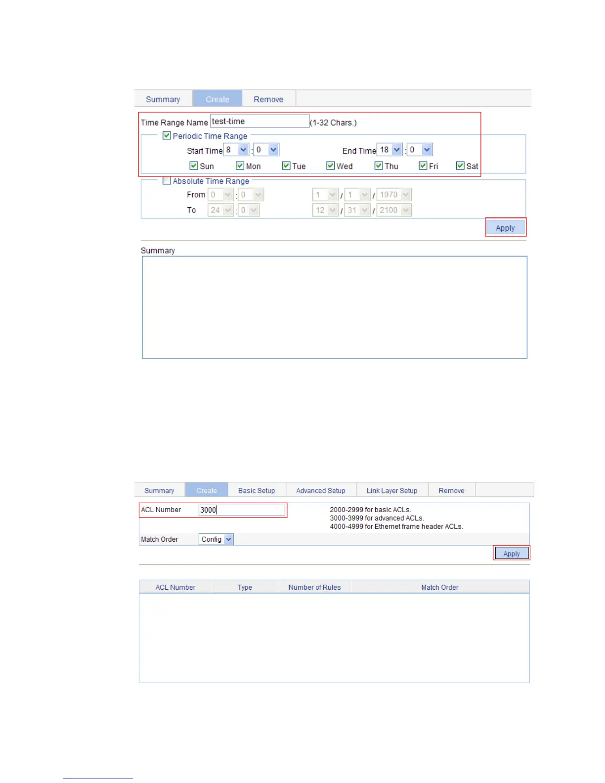 Figure 498 Defining a time range covering 8:00 to 18:00 every day