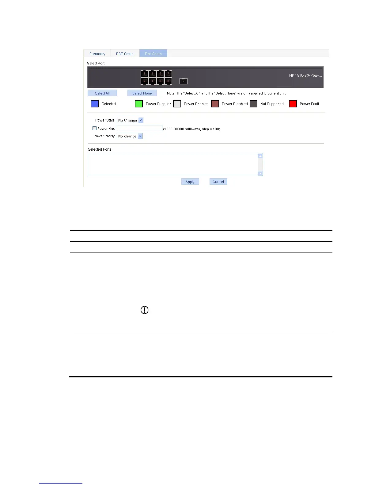 Select Port Select ports to be configured. They will be displayed in the Selected Ports area.