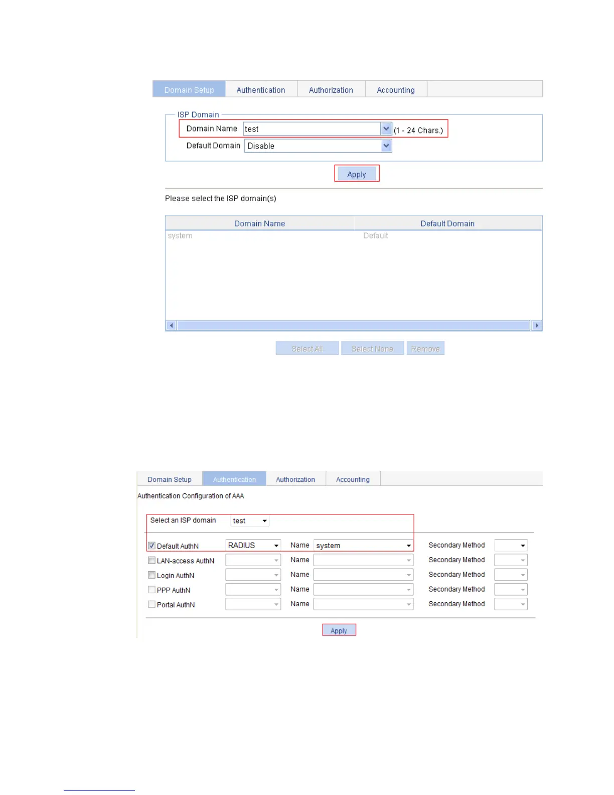 c. Select Default AuthN, select the authentication method RADIUS, and select the authentication