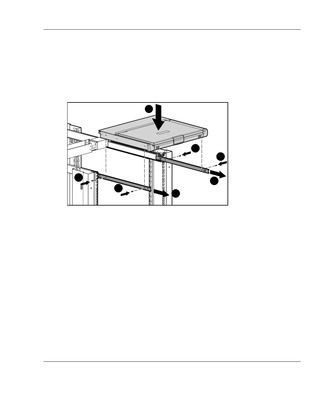 b. Place the 1U Integrated Keyboard Drawer on the mounting rails (2).