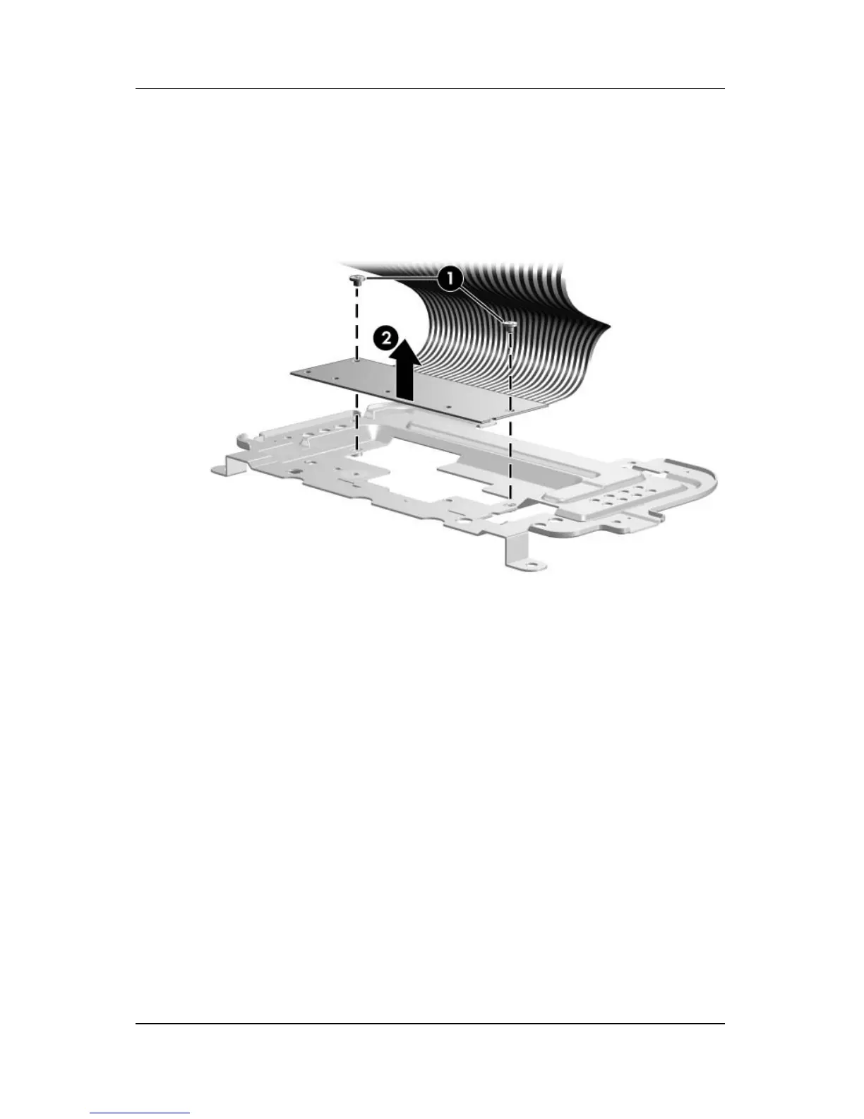 6. Remove the TouchPad board 2 from the TouchPad bracket.