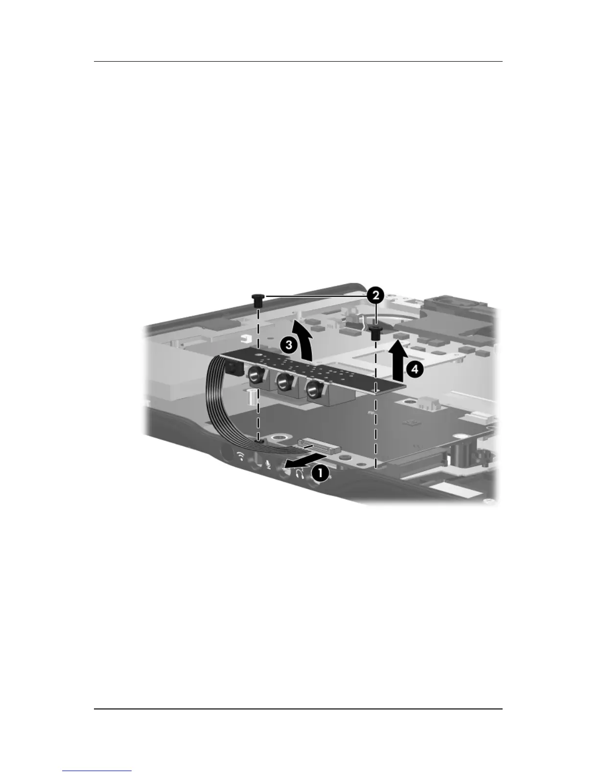 4. Lift the rear edge of the audio/infrared board 3 and swing it