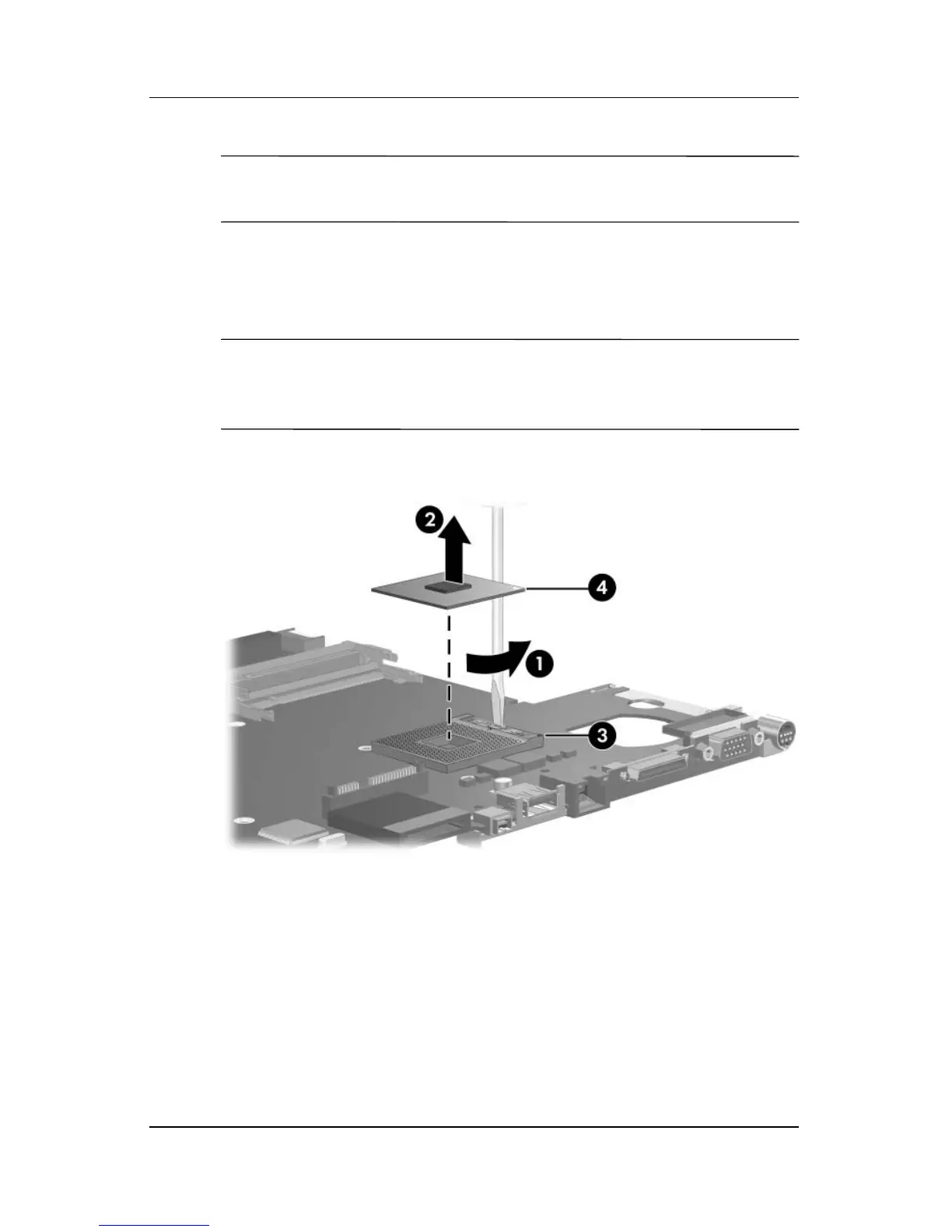 2. Turn the processor locking screw 1 one-half turn