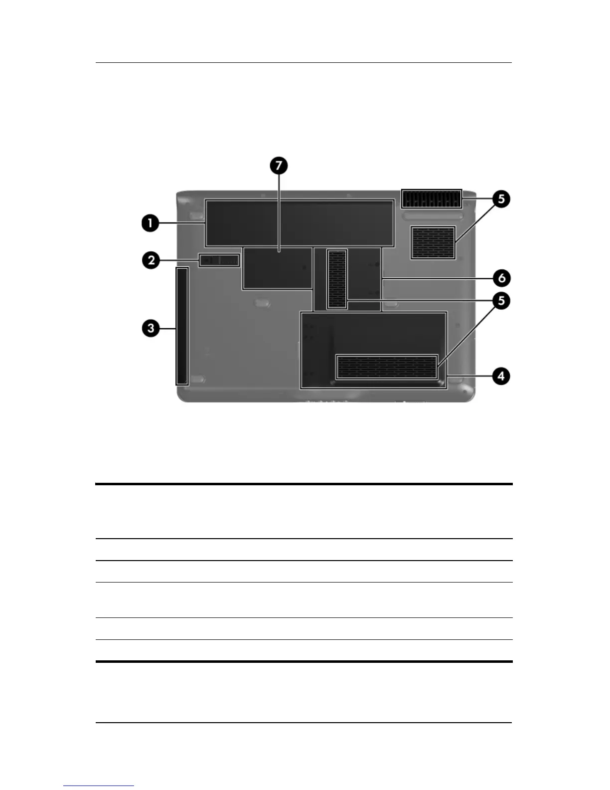 2 Battery release latch Releases the battery from the battery