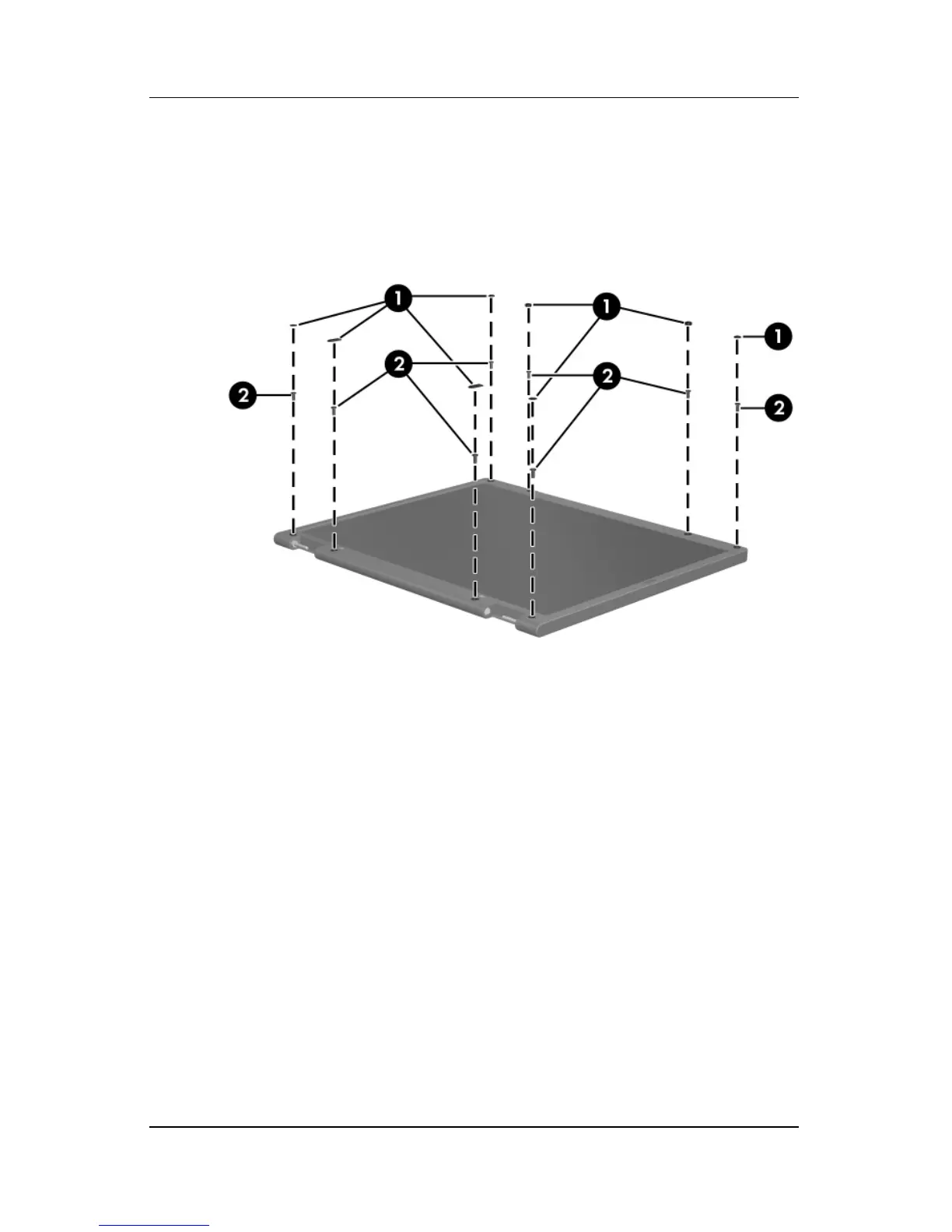 1. Remove all screw covers 1 and screws 2 that secure the