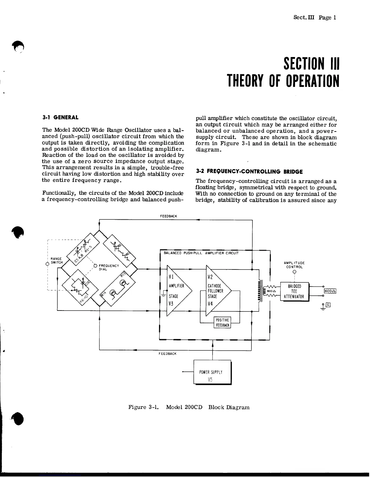 HP 200CD - Theory of Operation; Frequency-Controlling Bridge; Block Diagram