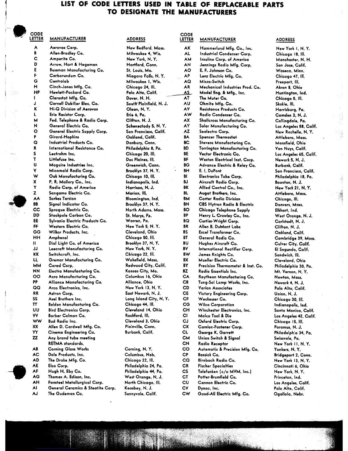 HP 200CD - List of Code Letters Used in Table of Replacement Parts