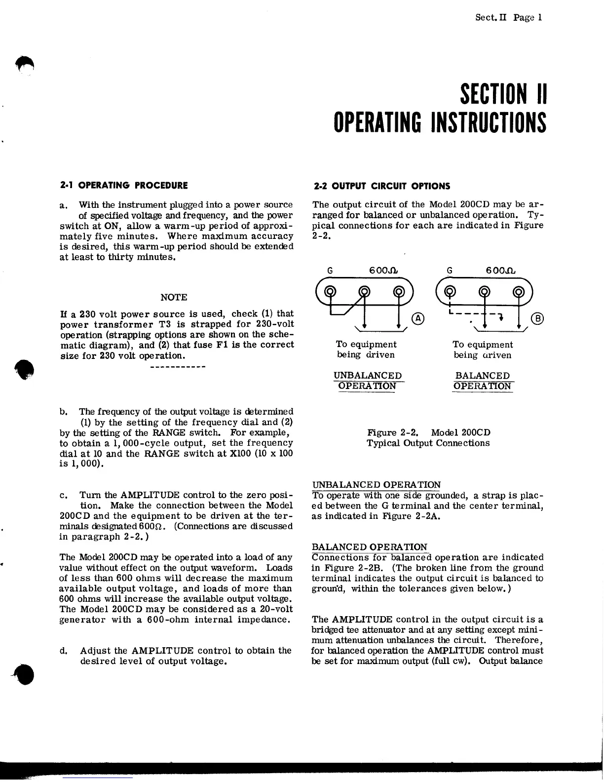HP 200CD - Section II Operating Instructions; 2-1 Operating Procedure; 2-2 Output Circuit Options