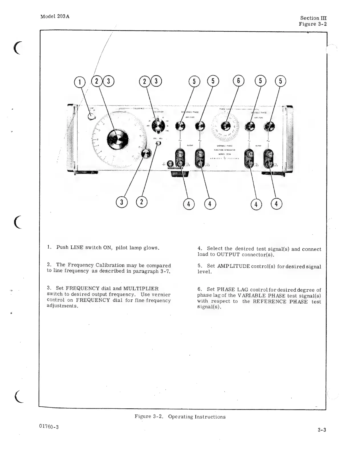 HP 203A - Set FREQUENCY; Set PHASE