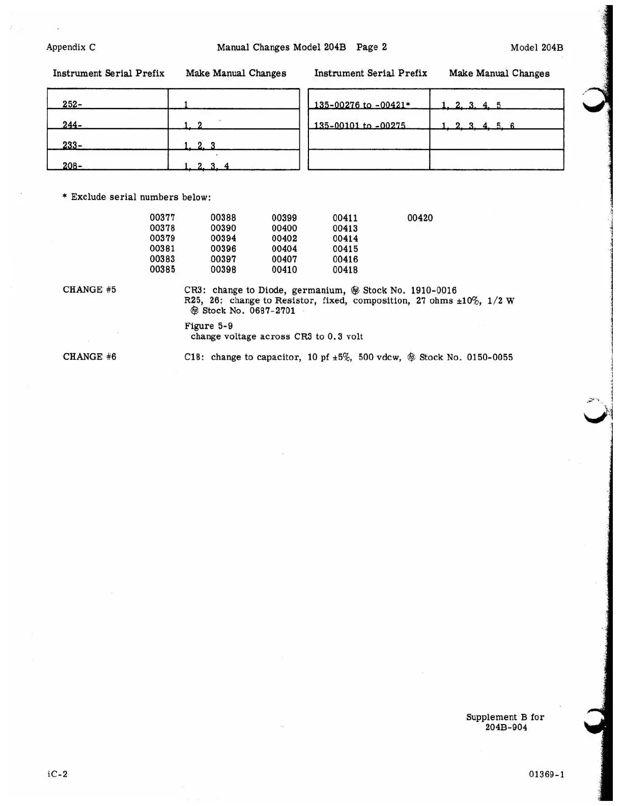 Appendix C Manual Changes Model 204B Page 2 Model 204B