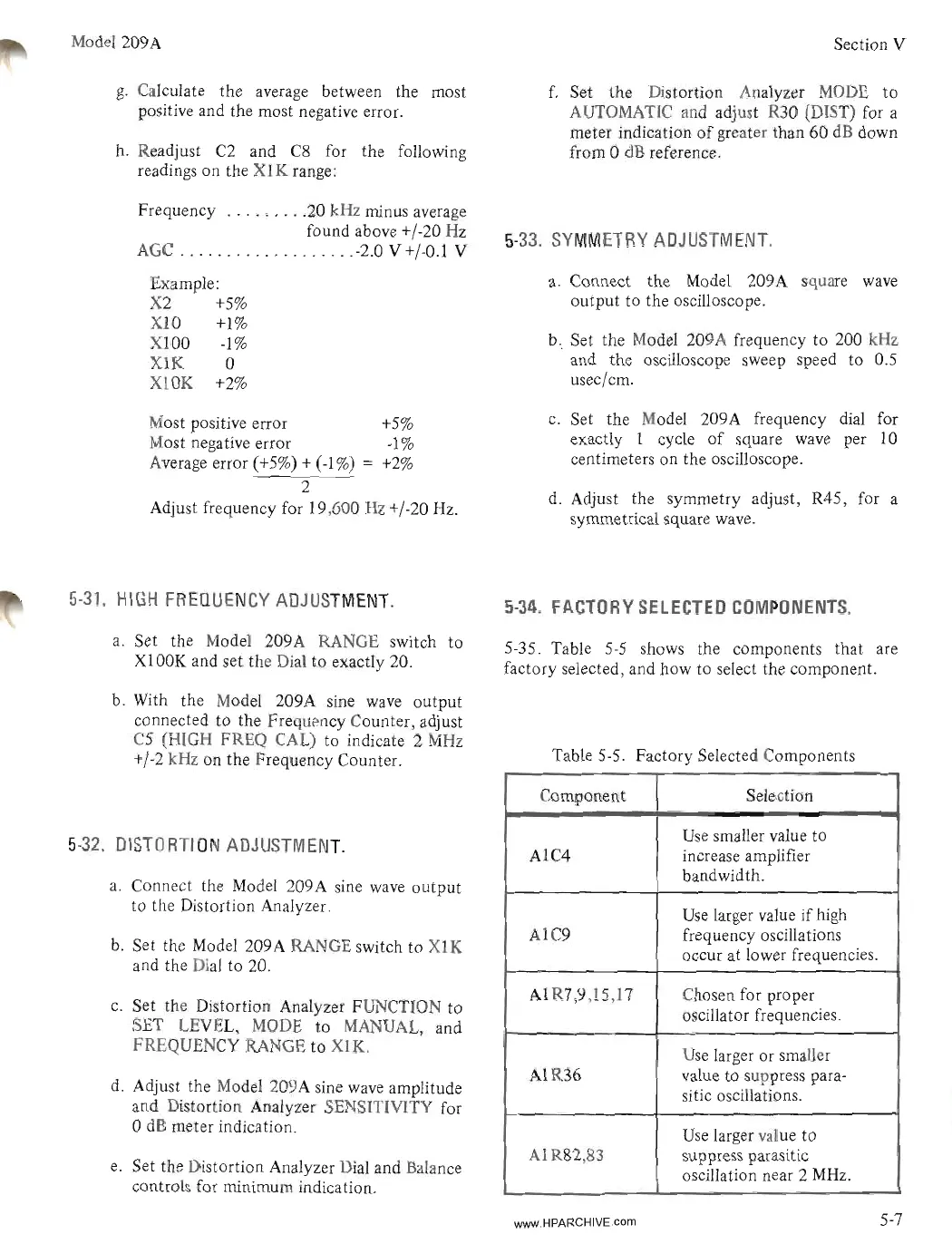 Table 5-5. Factory Selected Components