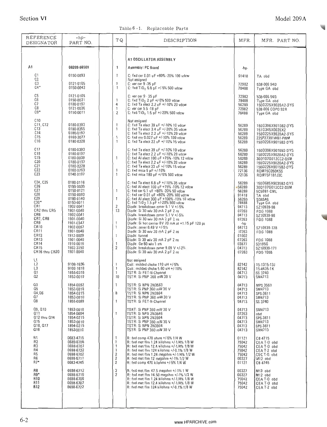 HP 209A - Replaceable Parts