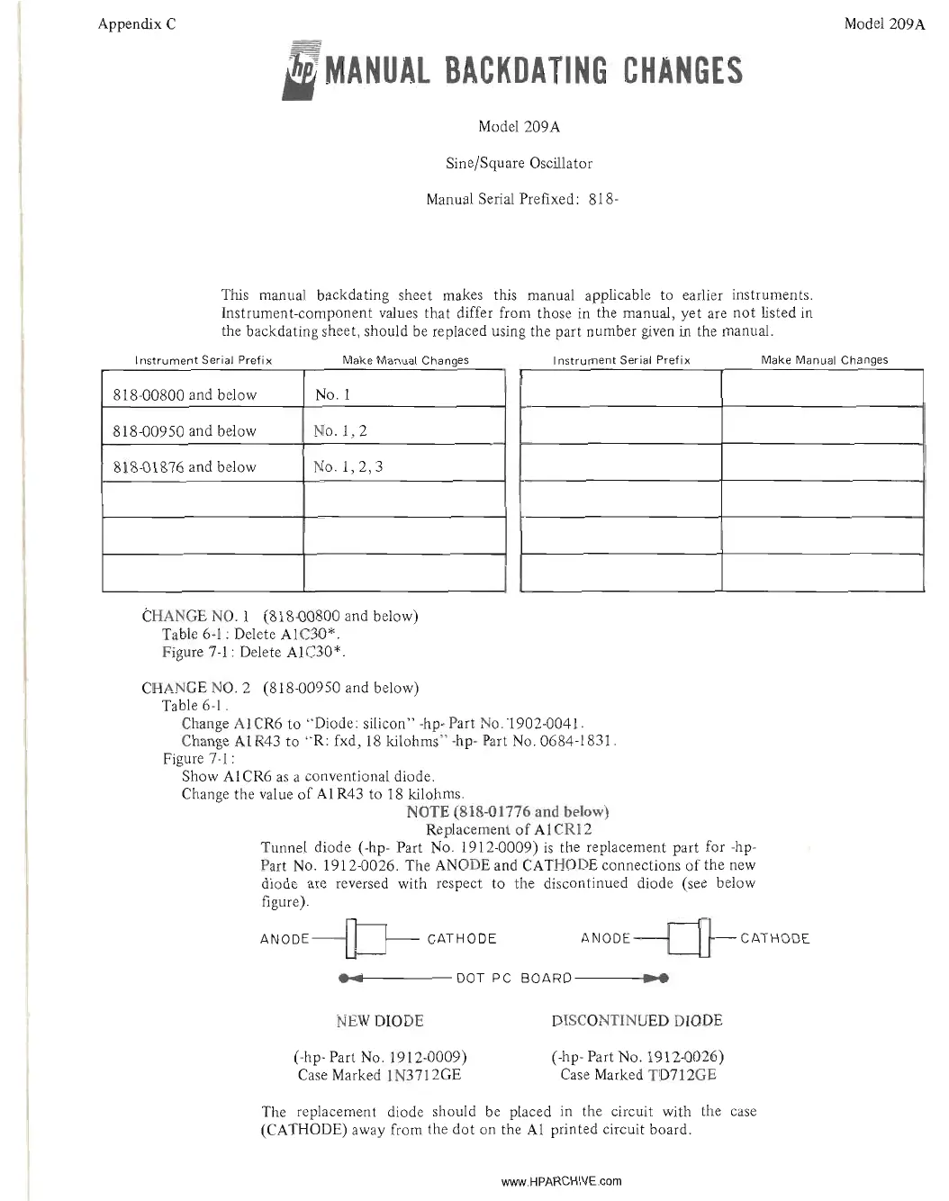 CHANGE NO.1 (818-00800 and below)