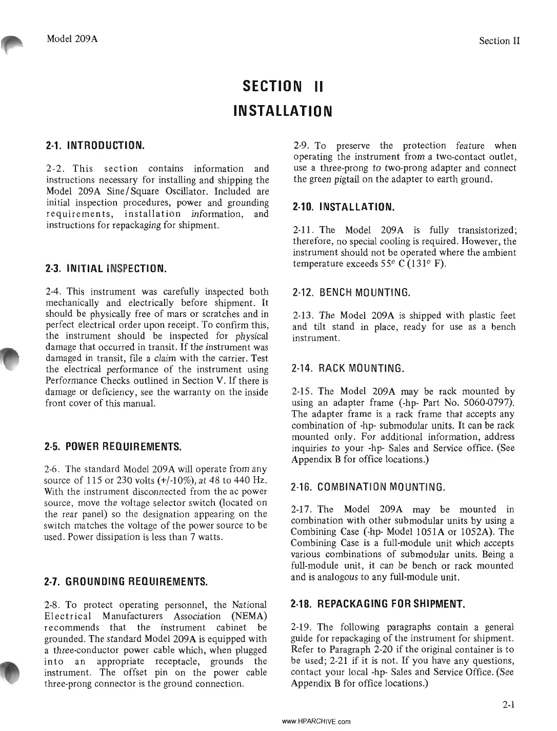 2-15. The Model 209A may be rack mounted by