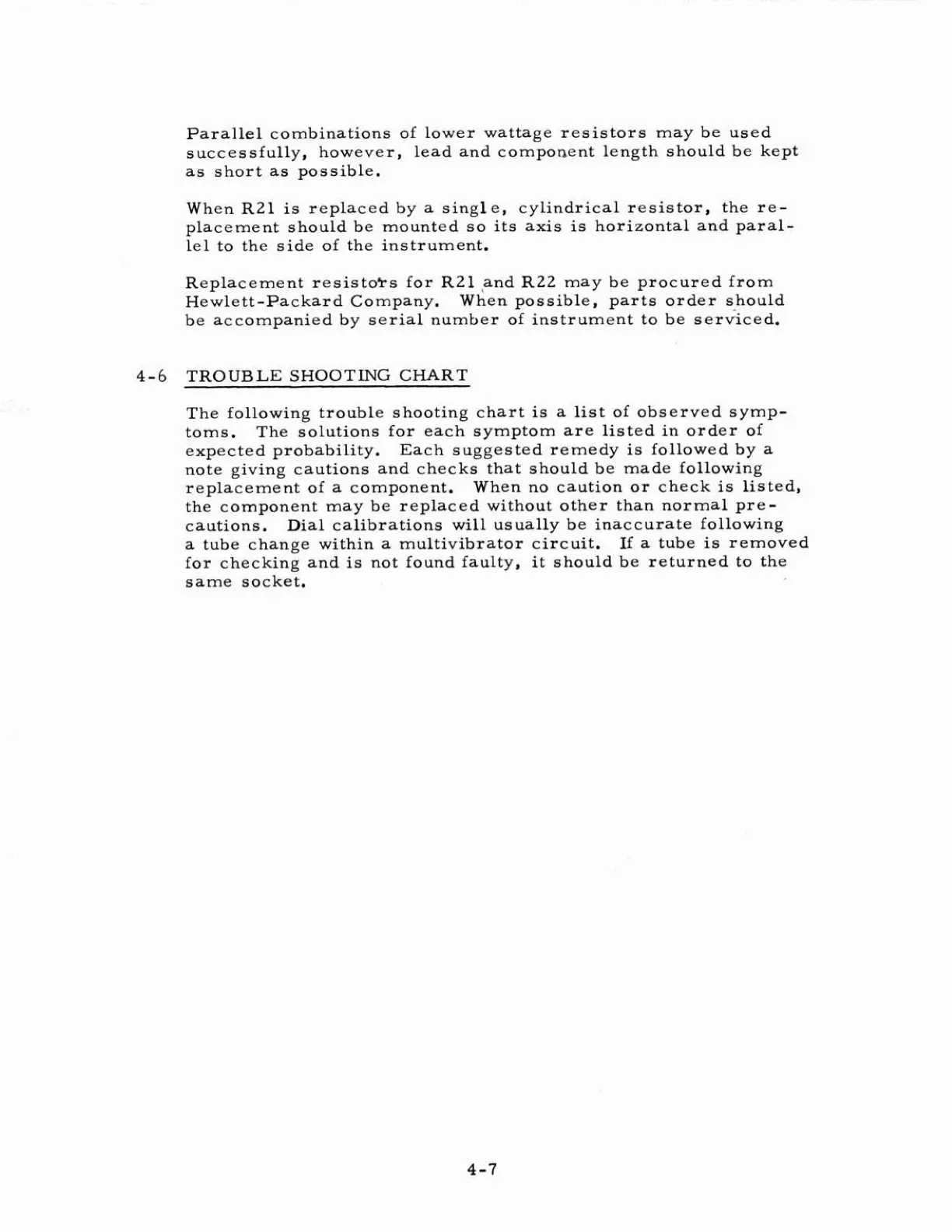 HP 212A - Troubleshooting Chart