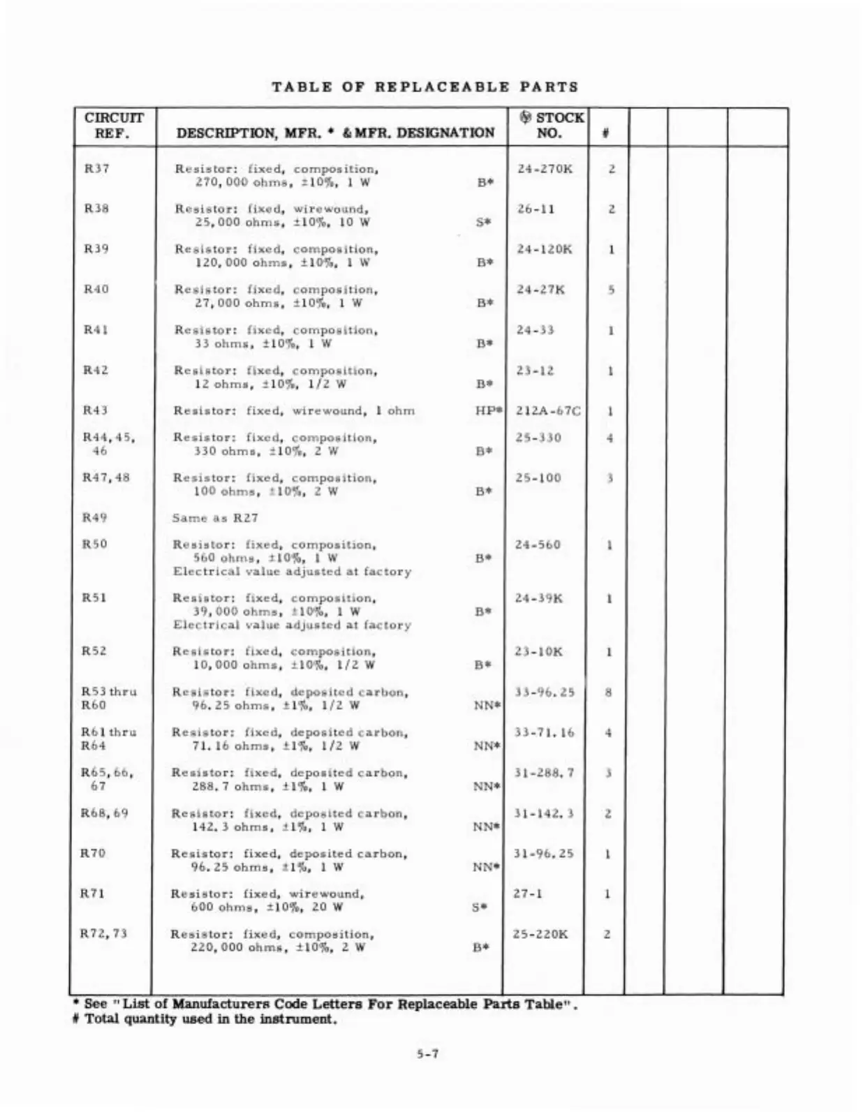 REPLACEABLE PARTS