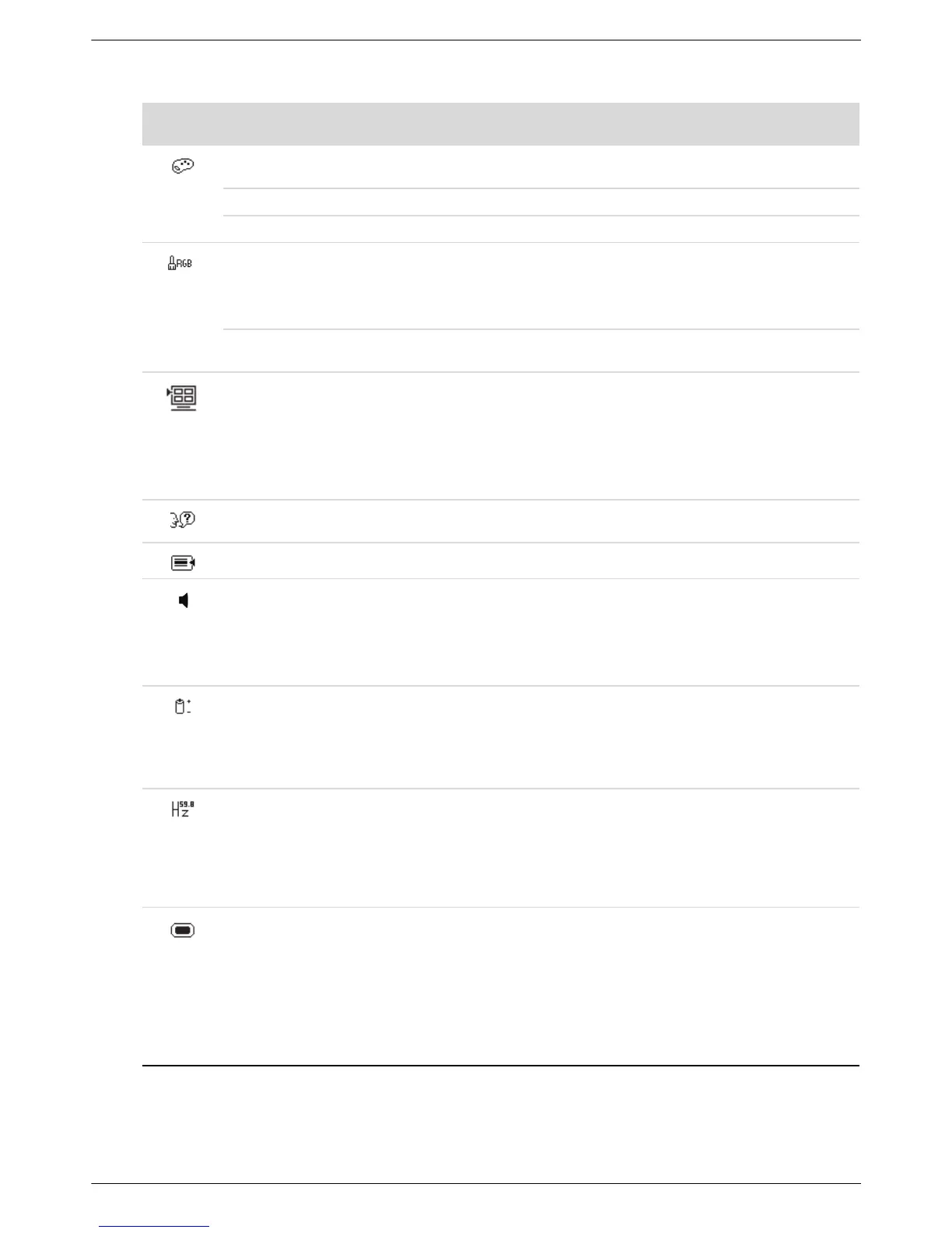 Mode Display Displays the resolution, refresh rate, and frequency information