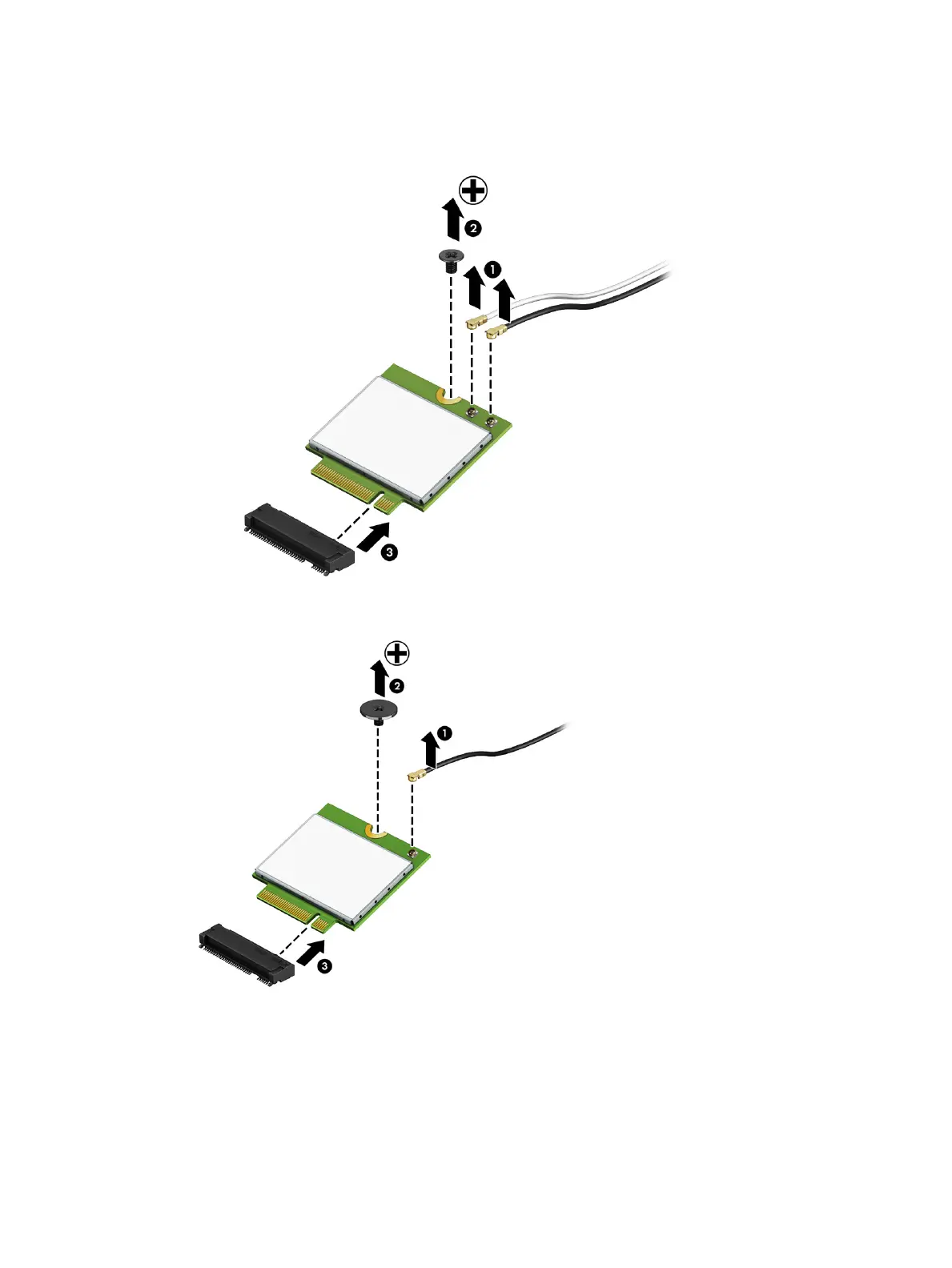 2. Remove the Phillips M2.0×3.0 screw (2), and then pull the module out of the socket (3).