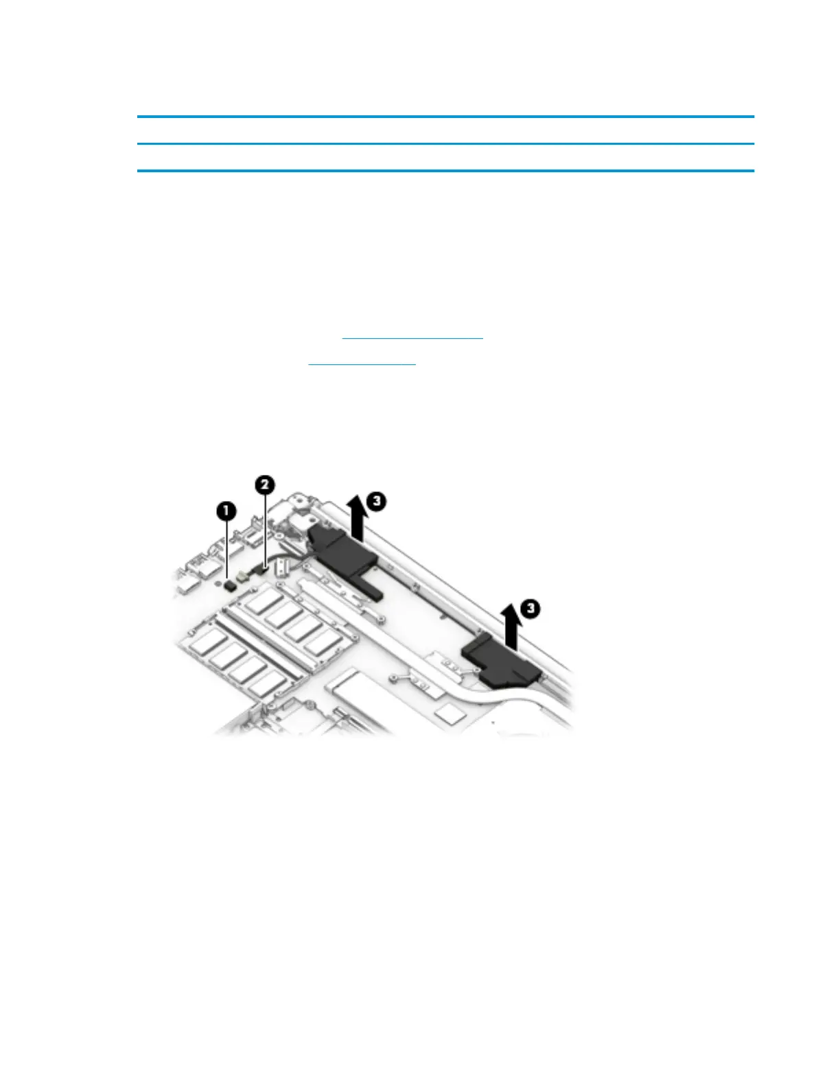 1. Disconnect the speaker cable from the system board (1).