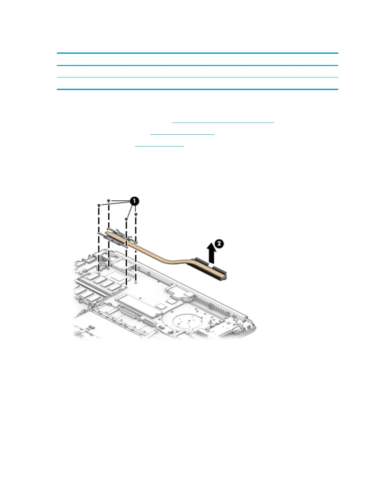1. In the order indicated on the heat sink assembly, remove the four Phillips M2.0×3.0 screws (1) that
