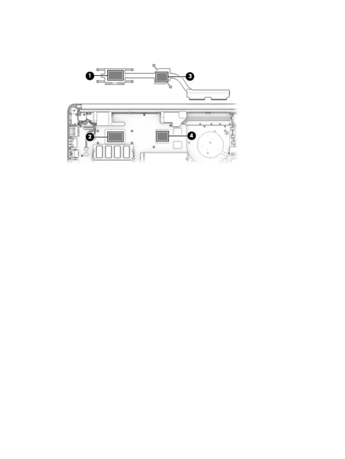 3. Thoroughly clean the thermal material from the surfaces of the heat sink (1)(3) and associated system