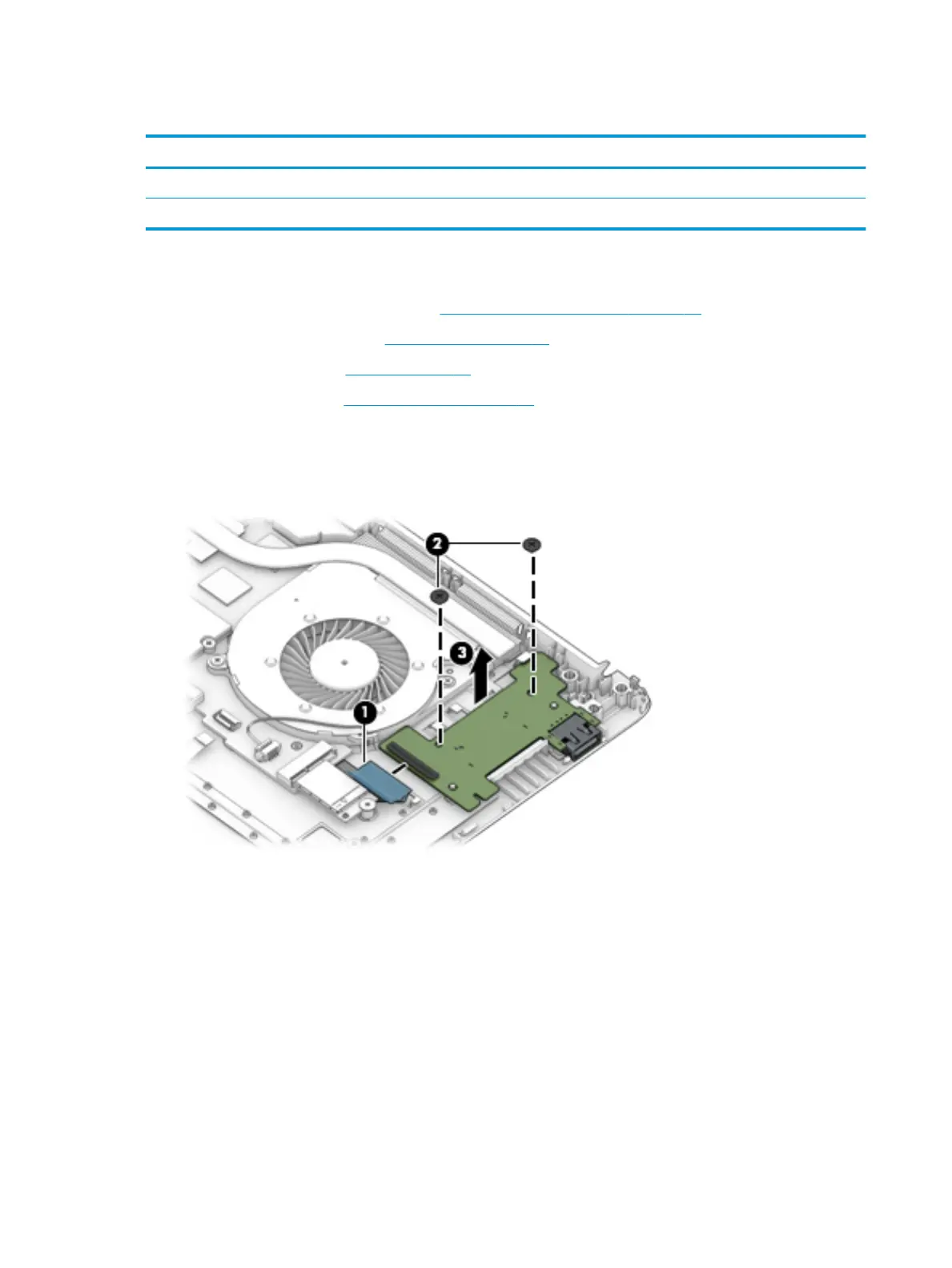 2. Remove the two Phillips M2.0×3.0 screws (2), and then remove the board from the computer (3).