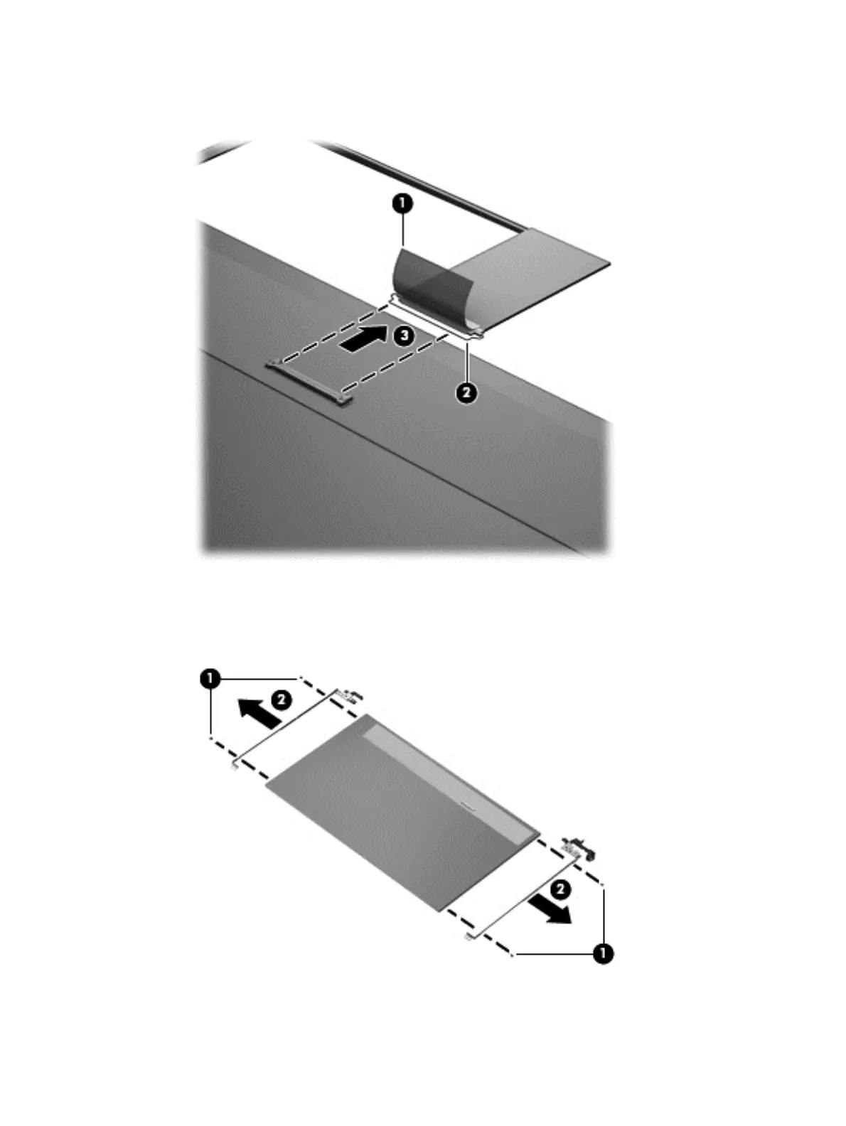 panel cable to the display panel, and then disconnect (2) and remove (3) the cable.