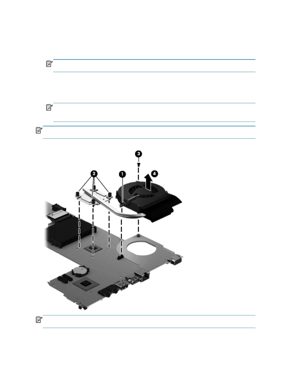 3. Remove the Phillips PM2.0×3.0 screw (3) that secures the fan/heat sink assembly to the system