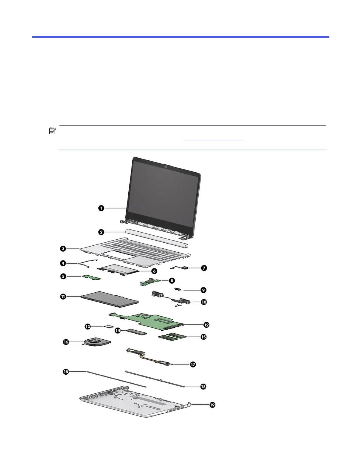To identify the computer major components, use this illustration and table.
