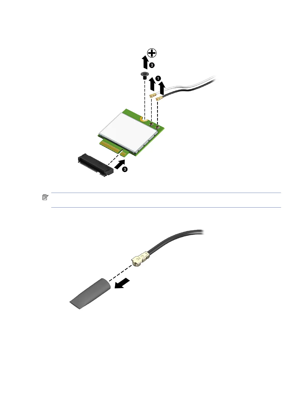 NOTE: If the WLAN antennas are not connected to the terminals on the WLAN module, the protective
