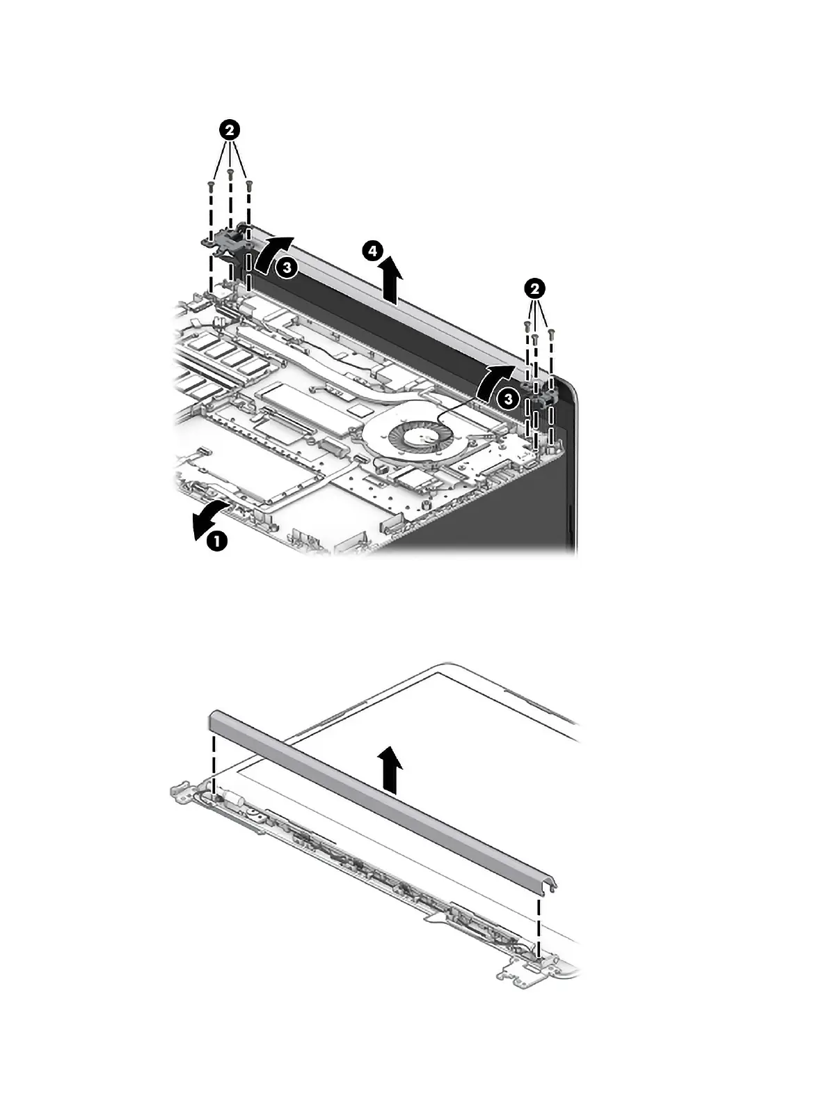5. Rotate the hinges (3) upward, and then remove the display (4).