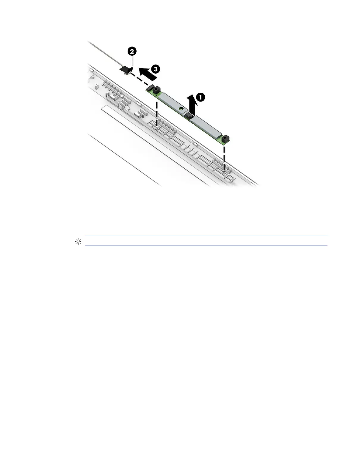 a. Use tweezers to grasp the adhesive tape (1) near the bottom corners of the display panel.