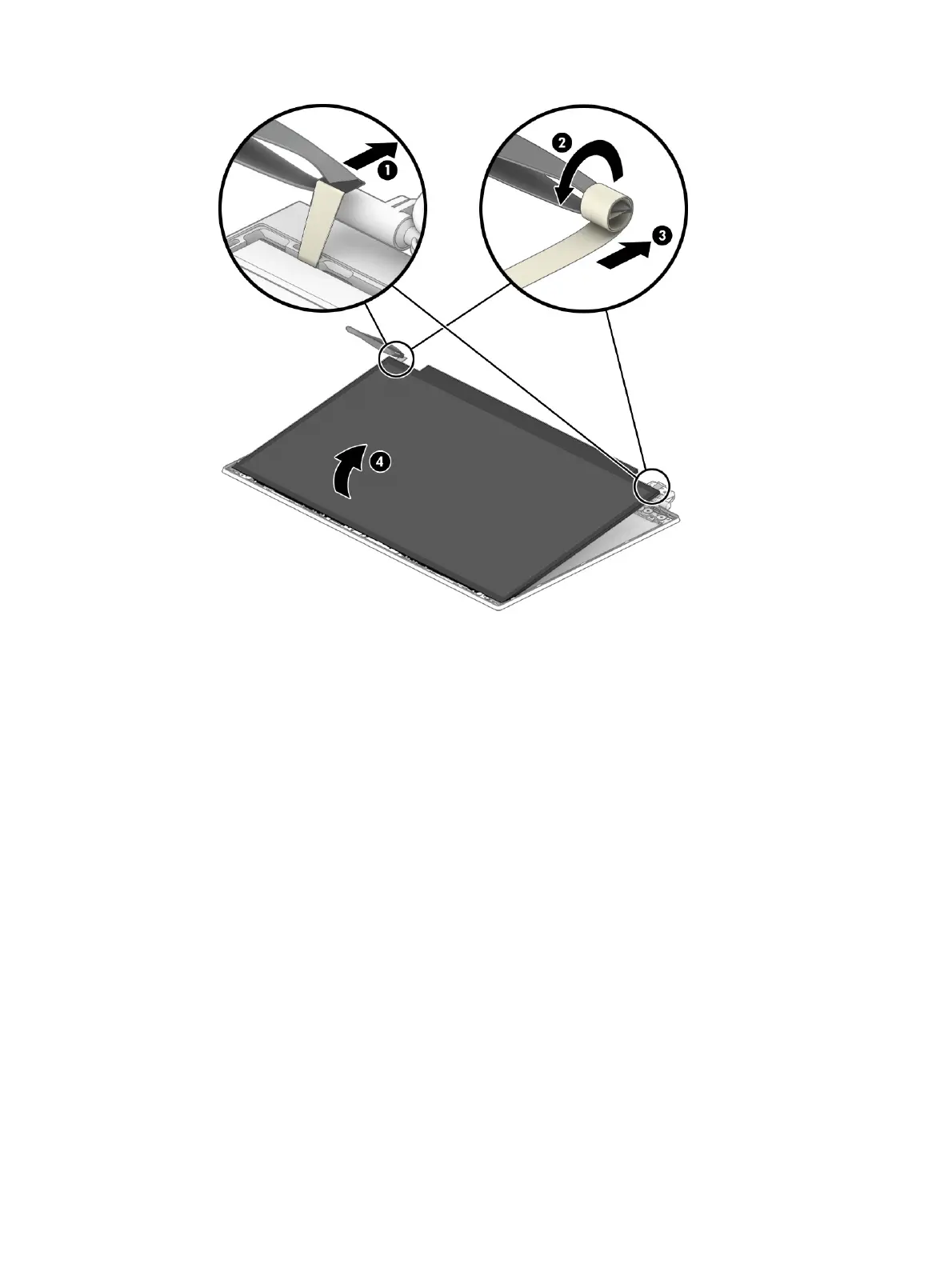 c. On the back of the display panel, release the adhesive strip that secures the display panel