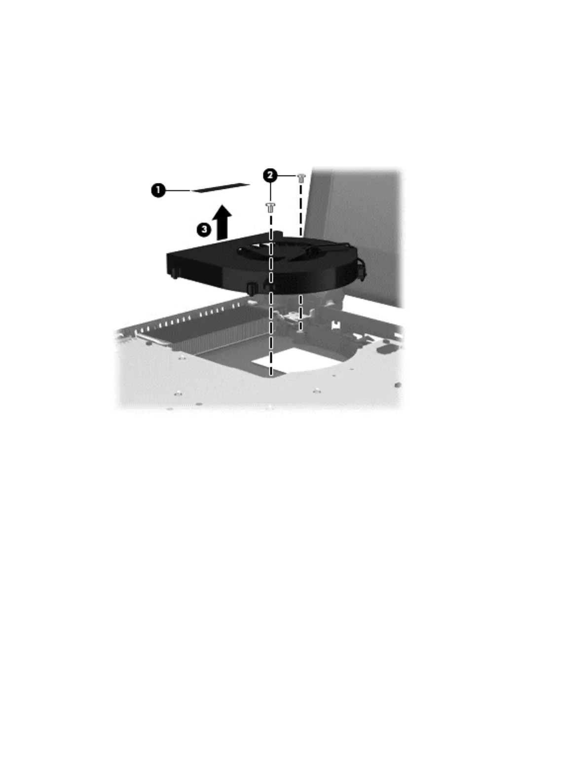 8. Remove the fan (3) from the base enclosure.