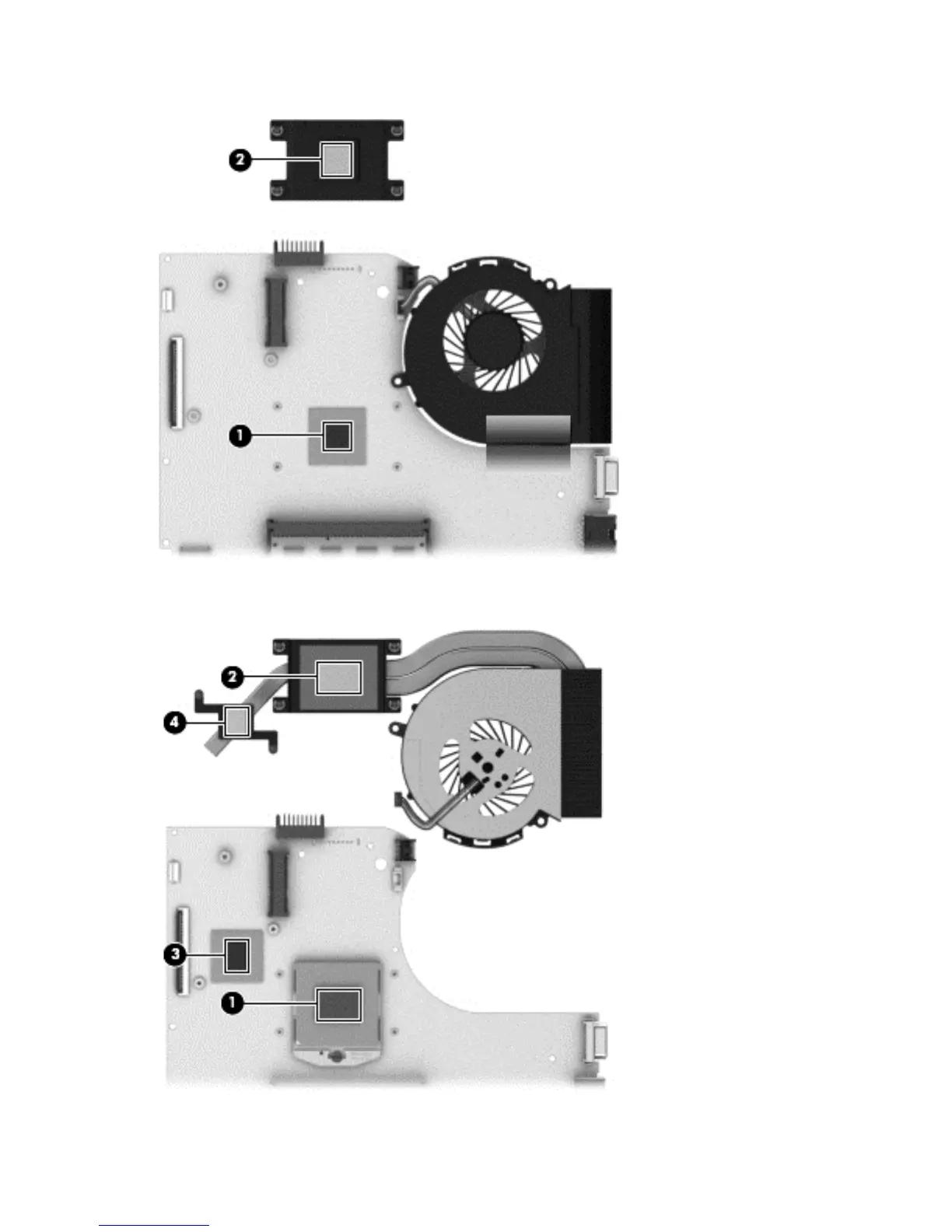 Thermal paste is used on the processor (1) and the heat sink section (2) that services it