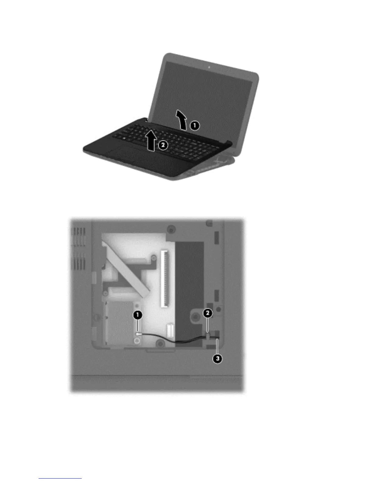 Note the antenna routing path on the bottom of the computer when reassembling the computer.