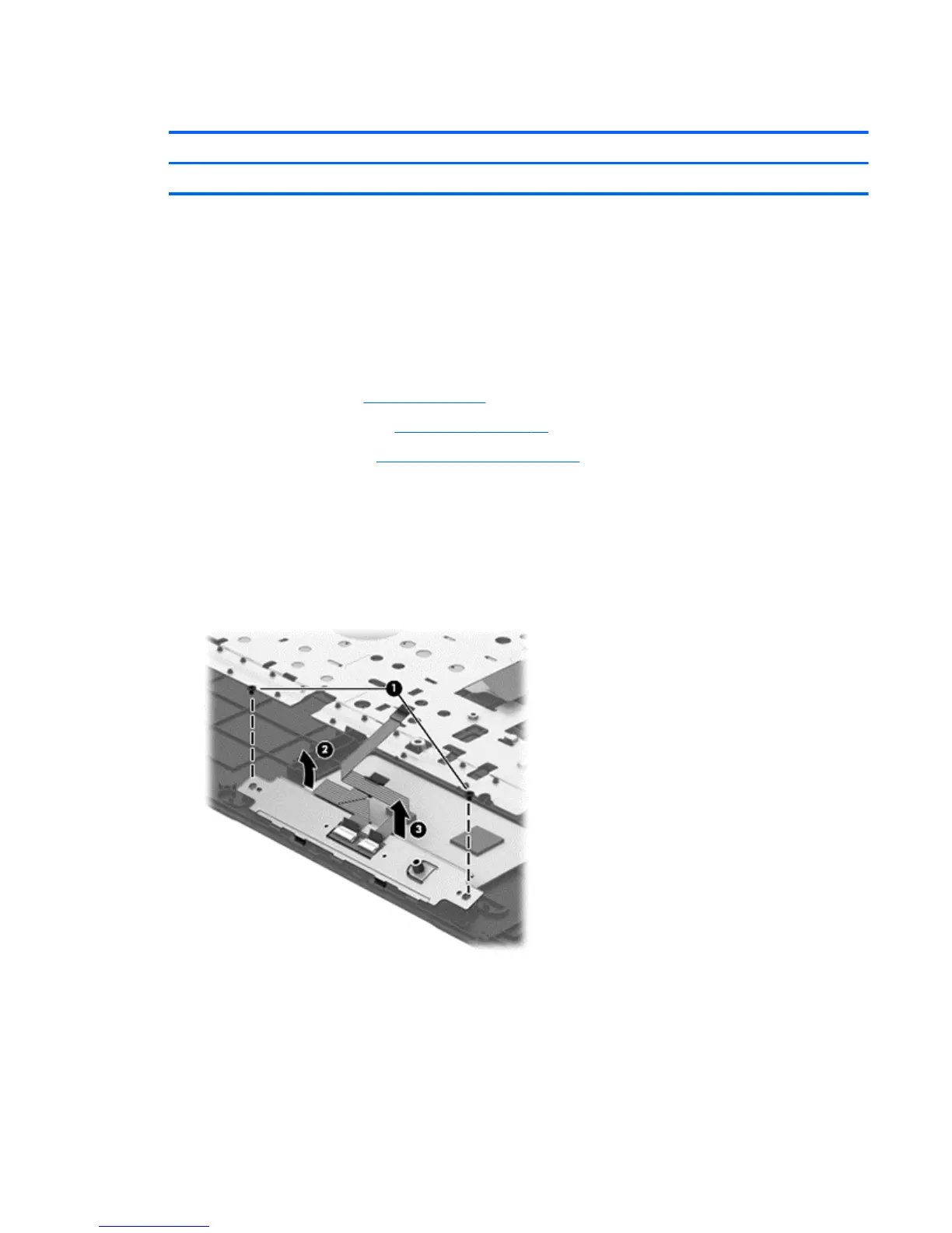 2. Remove the two Phillips PM2.0×3.0 screws (1) that secure the TouchPad button board to the top cover.
