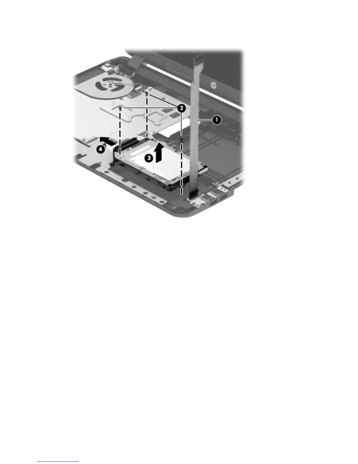 4. Disconnect the connector from the hard drive (4).