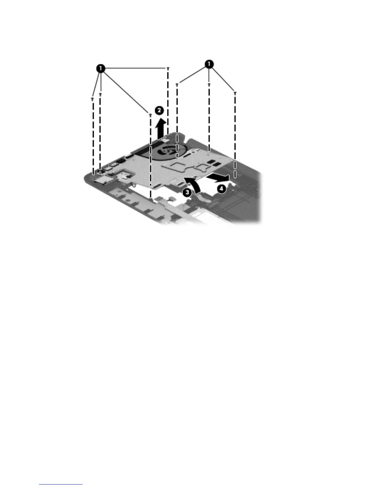 5. Lift the side opposite of the connectors of the system board (3), and then pull the system board away