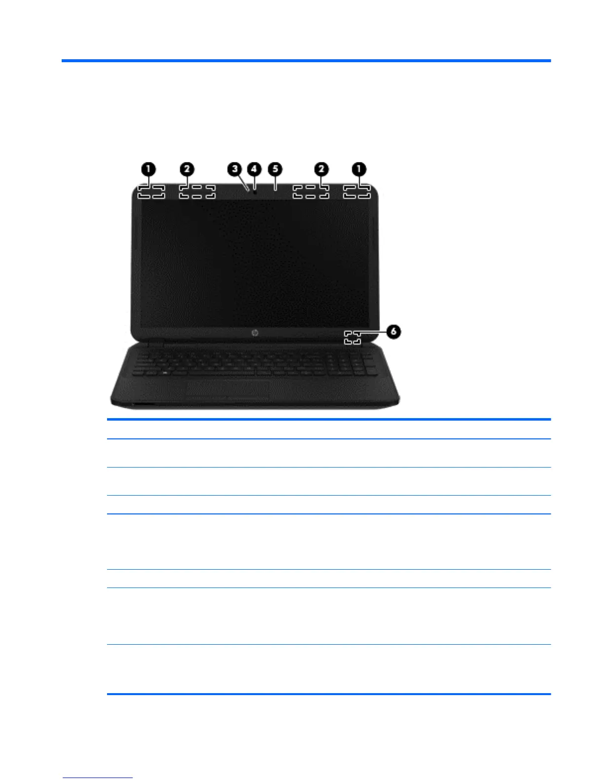(1) WLAN antennas (1 or 2)* (select models only) Send and receive wireless signals to communicate with wireless local