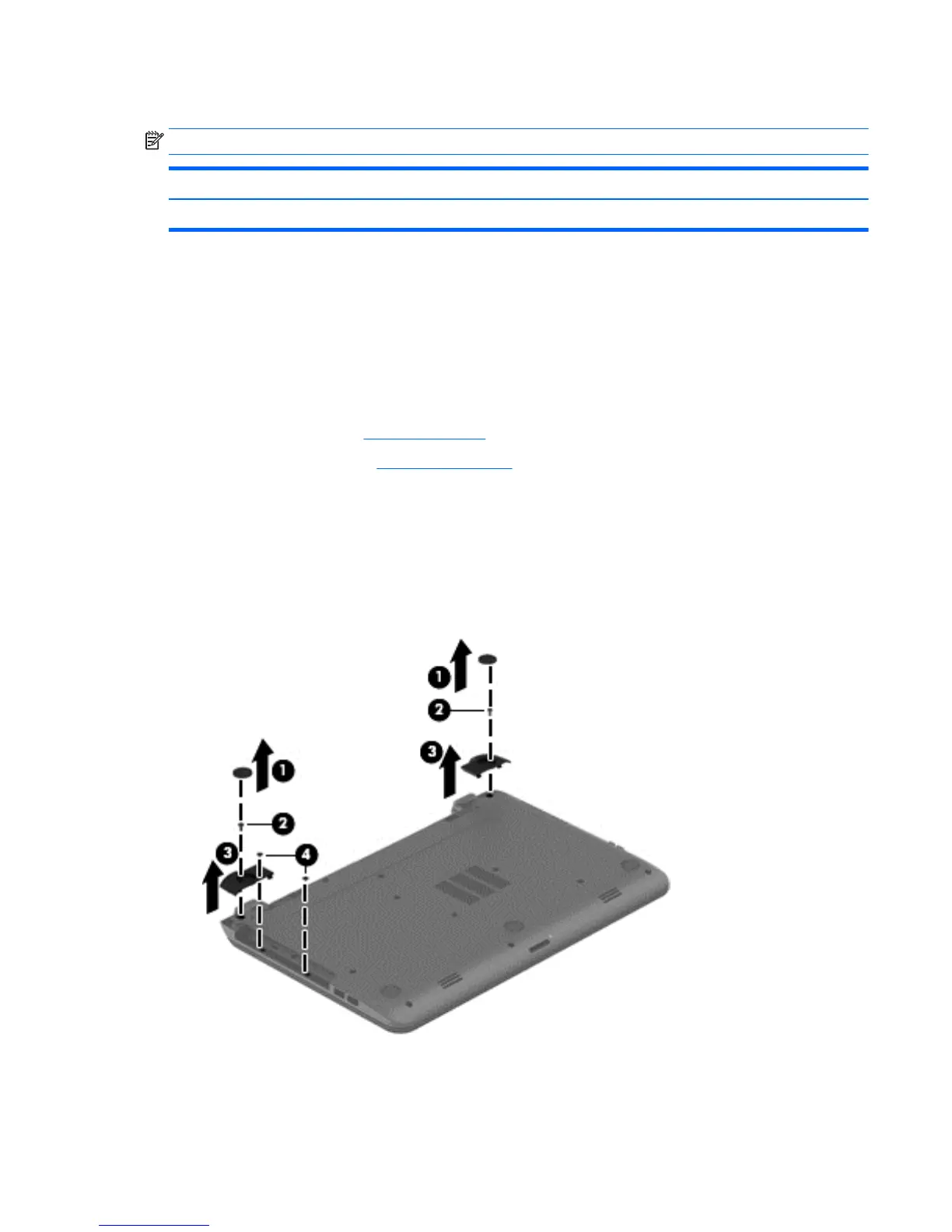 3. Remove the two Phillips broadhead PM2.5×2.0 screws from the optical drive bay (4).