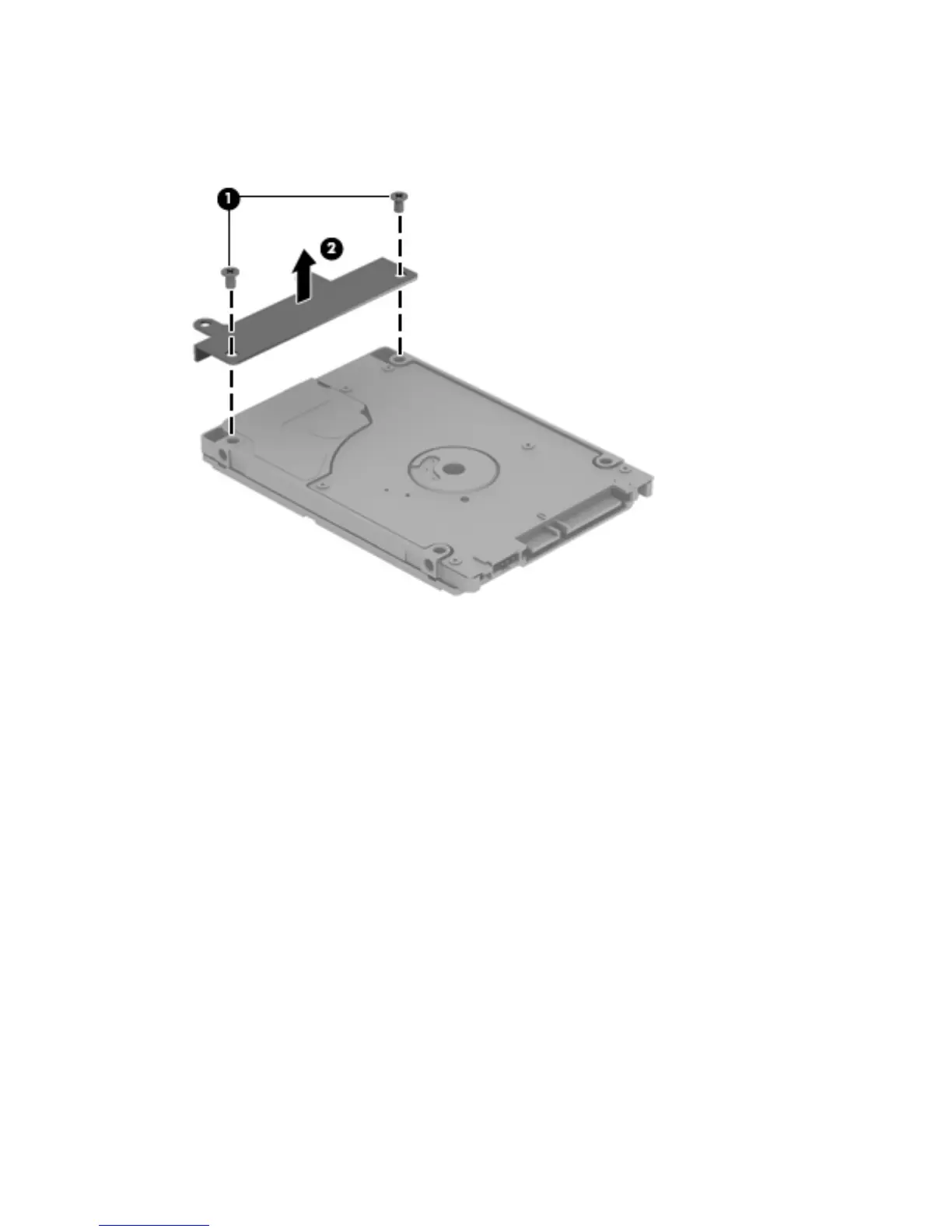 4. To remove the hard drive bracket, remove the two Phillips PM3.0×4.0 screws (1) that secure the bracket