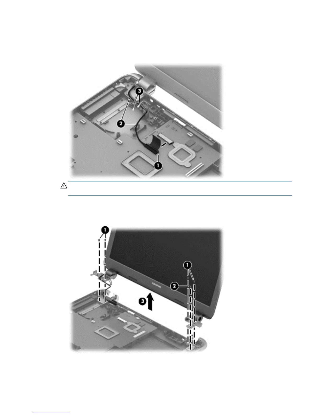 CAUTION: Support the display assembly when removing the following screws. Failure to support the